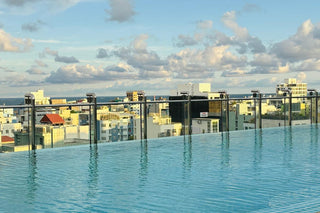 Rooftop pool and dining with panoramic views of Malé.